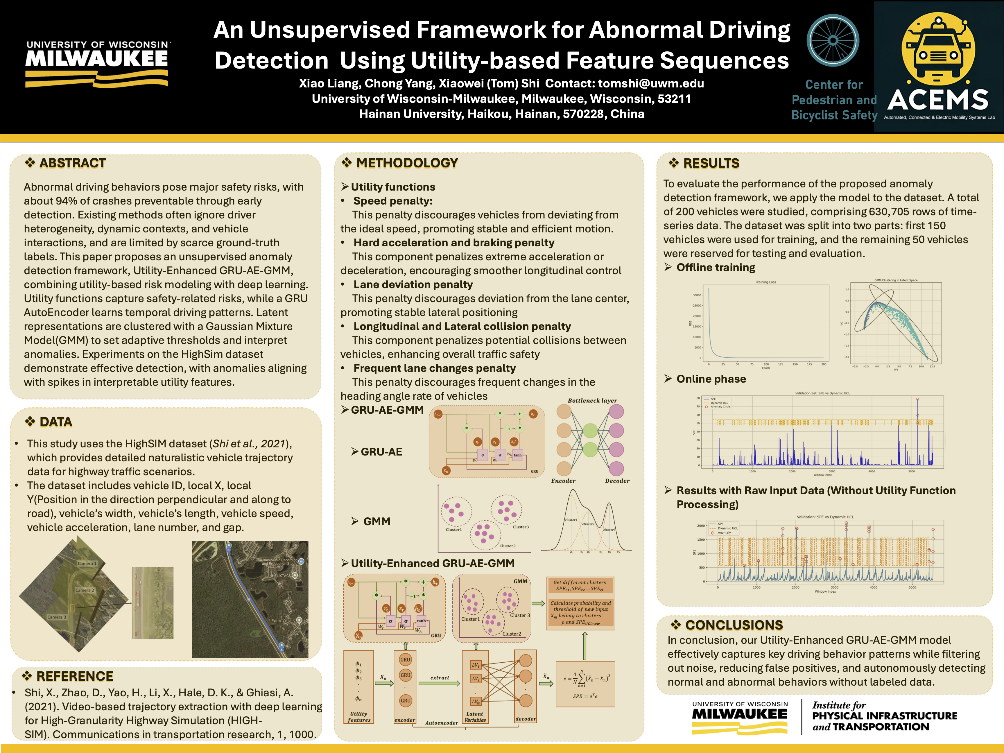 Liang, X., Yang, C., and Shi, X., 2025. An Unsupervised Framework for Abnormal Driving Detection Using Utility-Based Feature Sequences. 2026 Transportation Research Board (TRB) Annual Meeting. 【details】