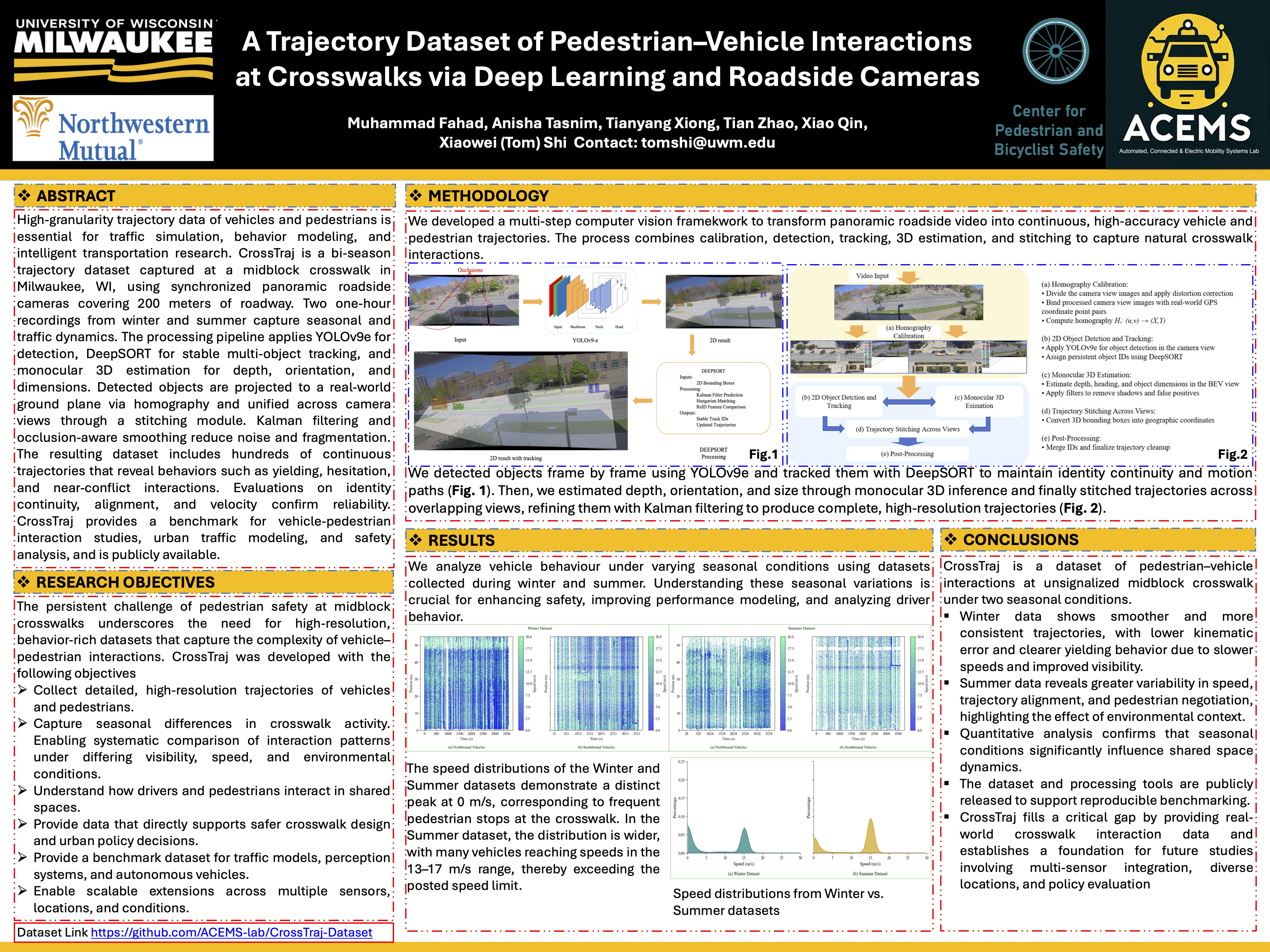 Fahad, M., Tasnim, A., Xiong, T., Damaraju, A., Zhao, T., Qin, X., and Shi, X., 2025. A Trajectory Dataset of Pedestrian–Vehicle Interactions at Crosswalks via Deep Learning and Roadside Cameras. 2026 TRB Annual Meeting. 【details】
