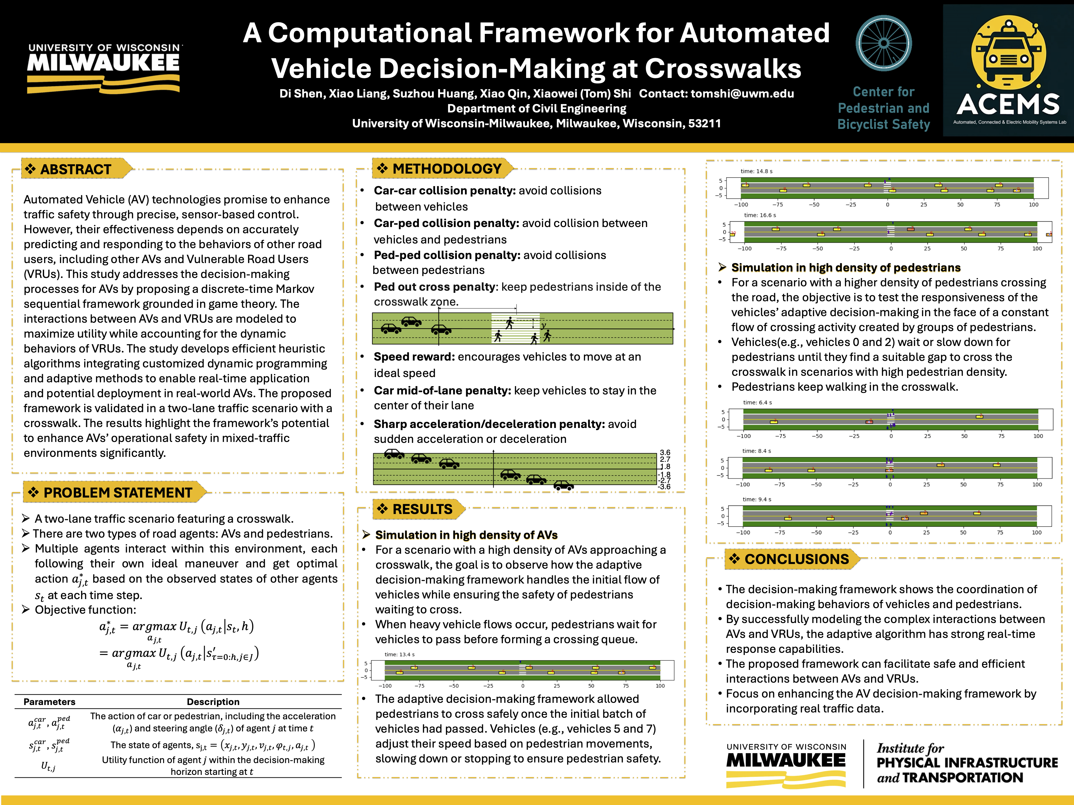 Shen, D., Liang, X., Huang, S., Qin, X., and Shi, X., 2024. A Computational Framework for Automated Vehicle Decision-Making at Crosswalks. 2025 TRB Annual Meeting. 【details】